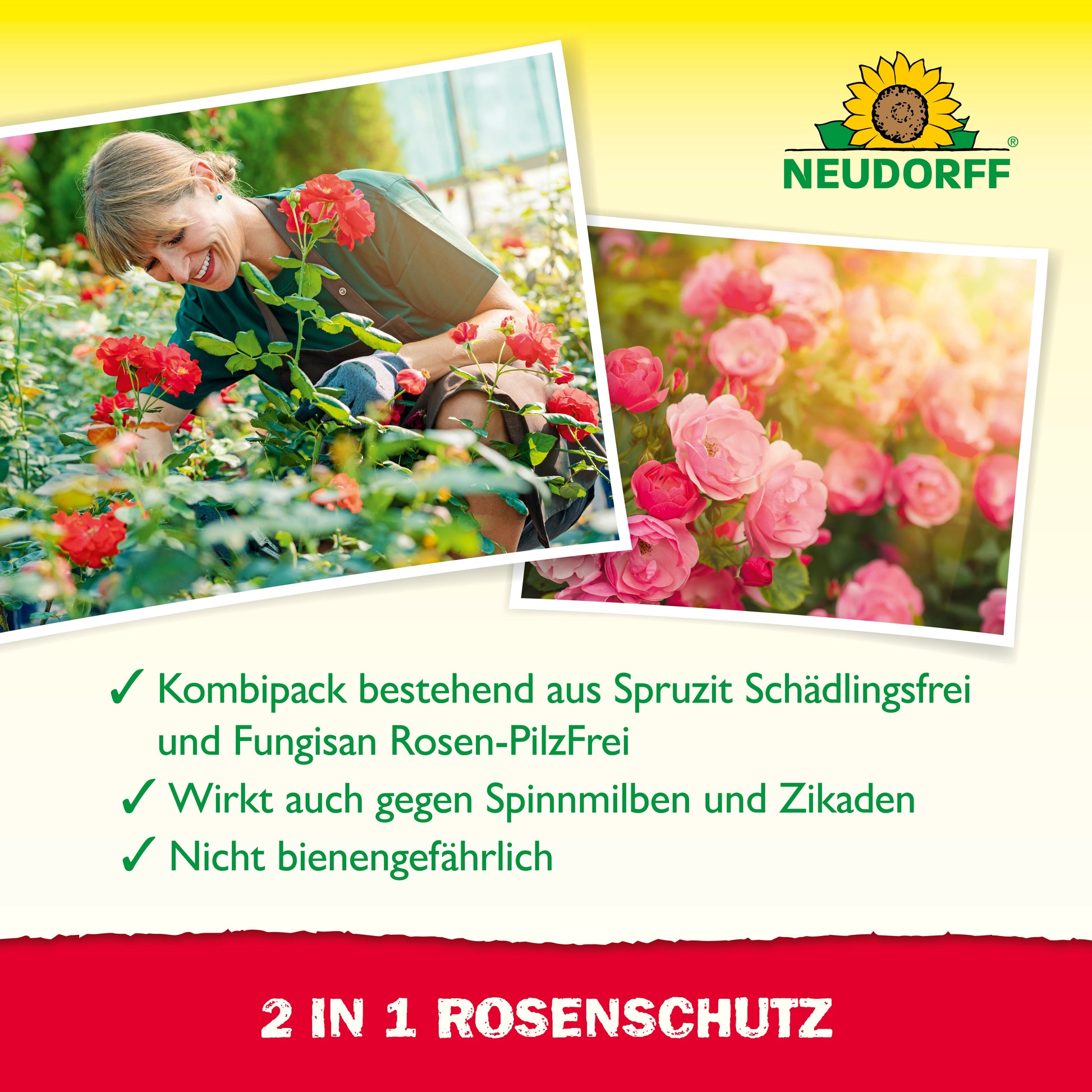 Rosen werden oft gleichzeitig von Pilzen und tierischen Schädlingen befallen, wie Rosenrost, Blattläusen, Zikaden und Raupen. Helfen Sie Ihren Rosen, in dem Sie beides gleichzeitig mit dieser Präparate-Kombination bekämpfen.