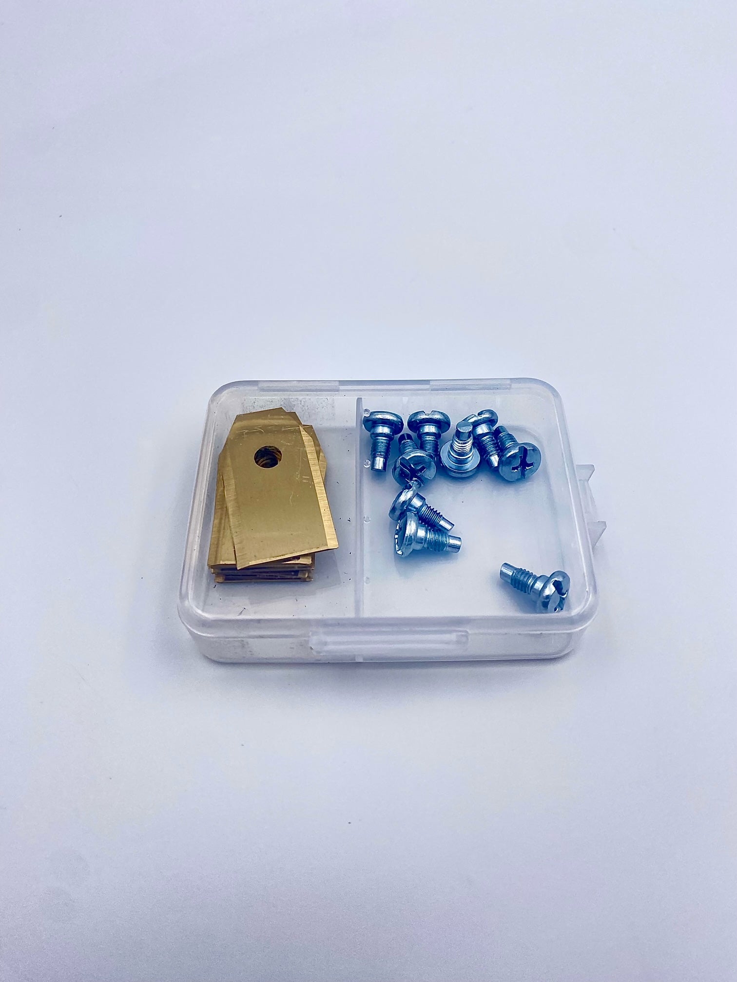 9 rostfreie Titan Ersatzmesser / Ersatzklingen Messer / Klingen (0,75mm) inkl. 9 Befestigungsschrauben.