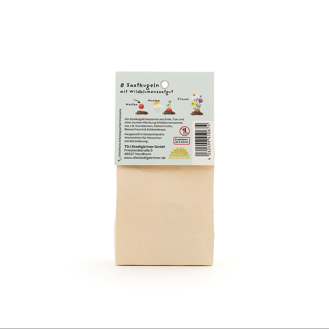 Glück summt in der Luft: Die Saatkugeln enthalten eine bunte Wildblumenmischung, die ganz einfach ausgeworfen werden kann – auf Balkon, im Garten oder in einem Topf. Mit etwas Wasser entsteht daraus ein fröhliches Blütenmeer – ein kleines Glück für jeden Tag.