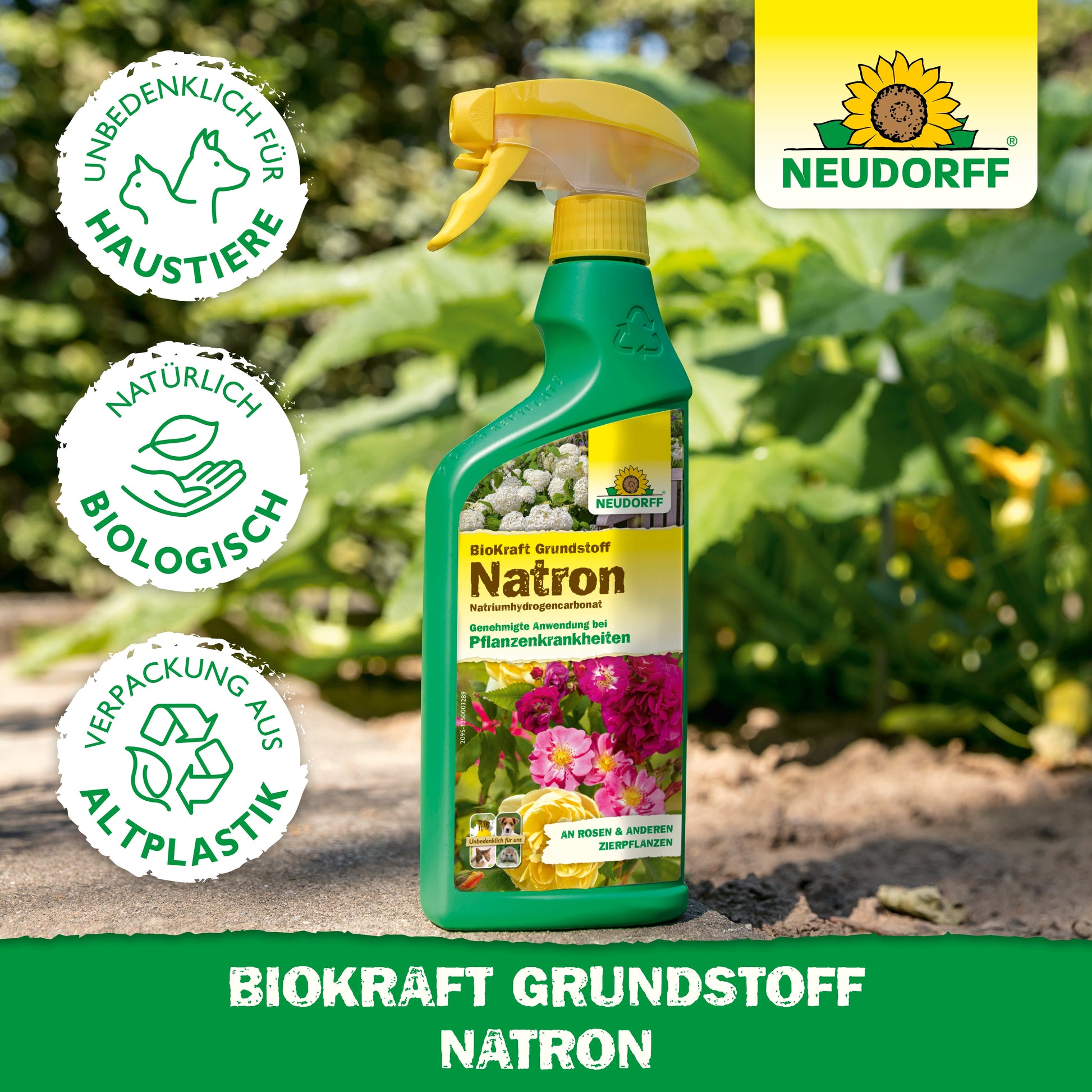 Anwendungsfertiger Grundstoff mit Natriumhydrogencarbonat zur gezielten Abwehr von pilzlichen Erkrankungen wie Echtem Mehltau an Rosen, Tomaten, Gurken und anderen Zierpflanzen.