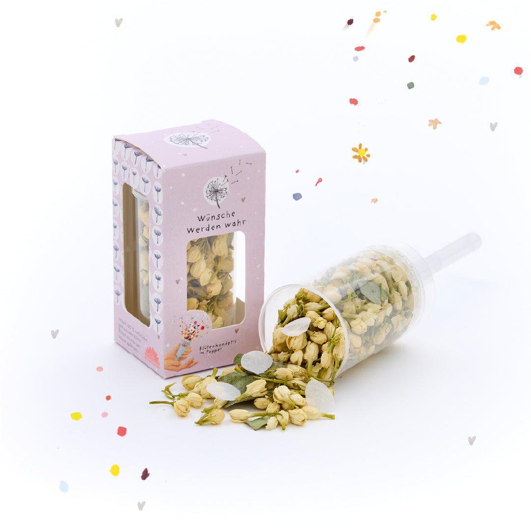 🌟 Wünsche werden wahr - manchmal braucht es nur ein bisschen Konfetti: Gute Wünsche kann man immer gebrauchen - ob für sich selbst oder für andere. Dieser Blütenkonfetti Popper erinnert auf zauberhafte Weise daran, nie aufzuhören zu träumen. Perfekt, um jemandem Mut, Hoffnung oder einfach ein bisschen Magie zu schenken.