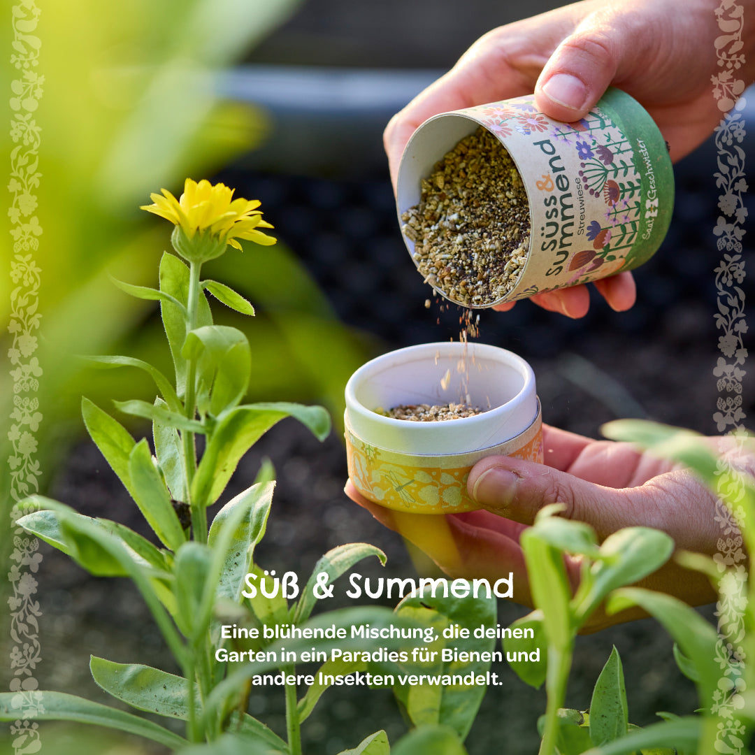 SÜß & SUMMEND: Die Streuwiese sieht nicht nur wunderschön aus, sondern ist auch ein nahrhaftes Buffet für Bienen und andere Insekten. Für mehr Summen und Brummen in deinem Garten!