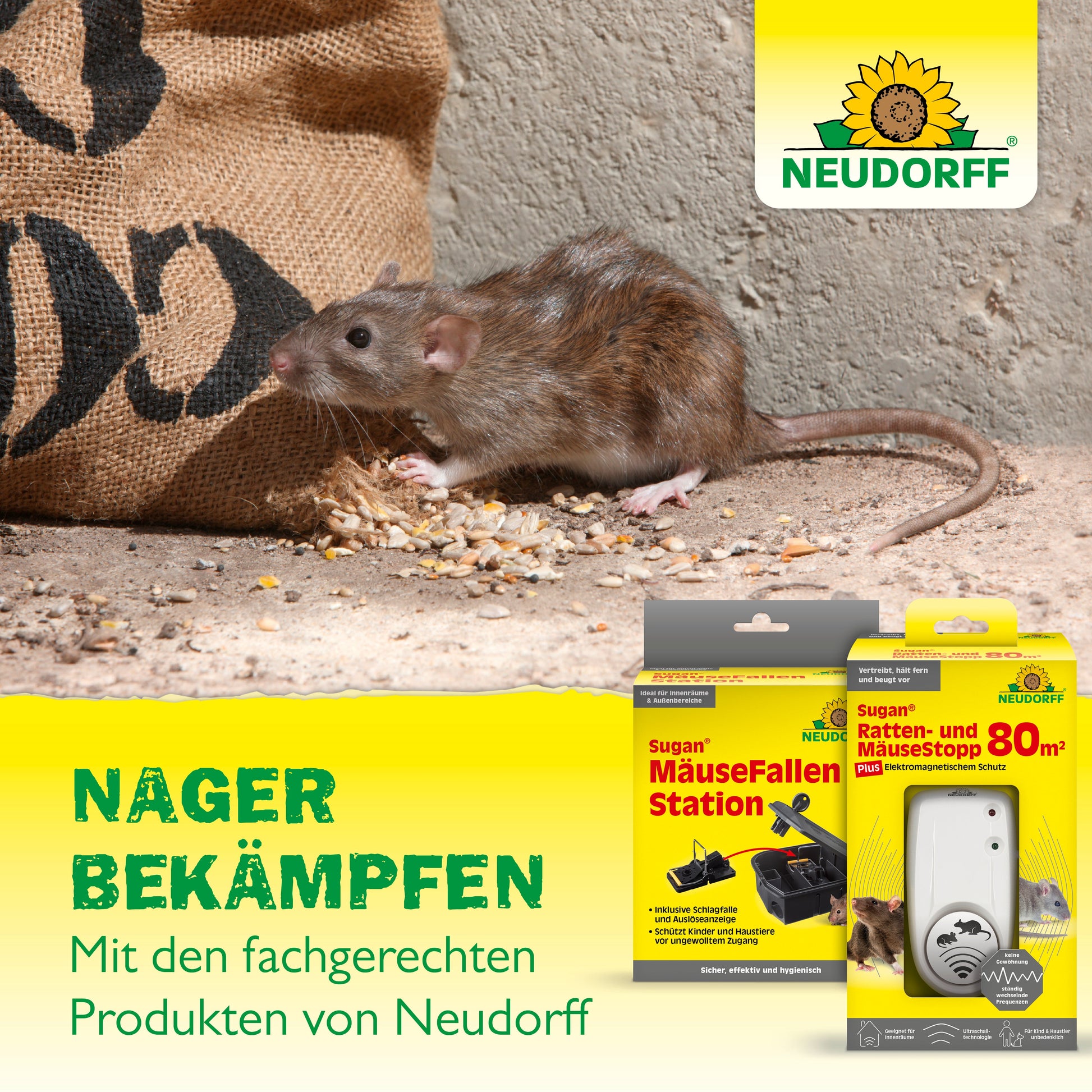 Ratten im Garten oder im Haus? Diese können Krankheiten übertragen, Zecken und Flöhe verbreiten und Vorräte oder Materialien anfressen. Bei Rattenkot und Fraßspuren mit Sugan Ratten bekämpfen!