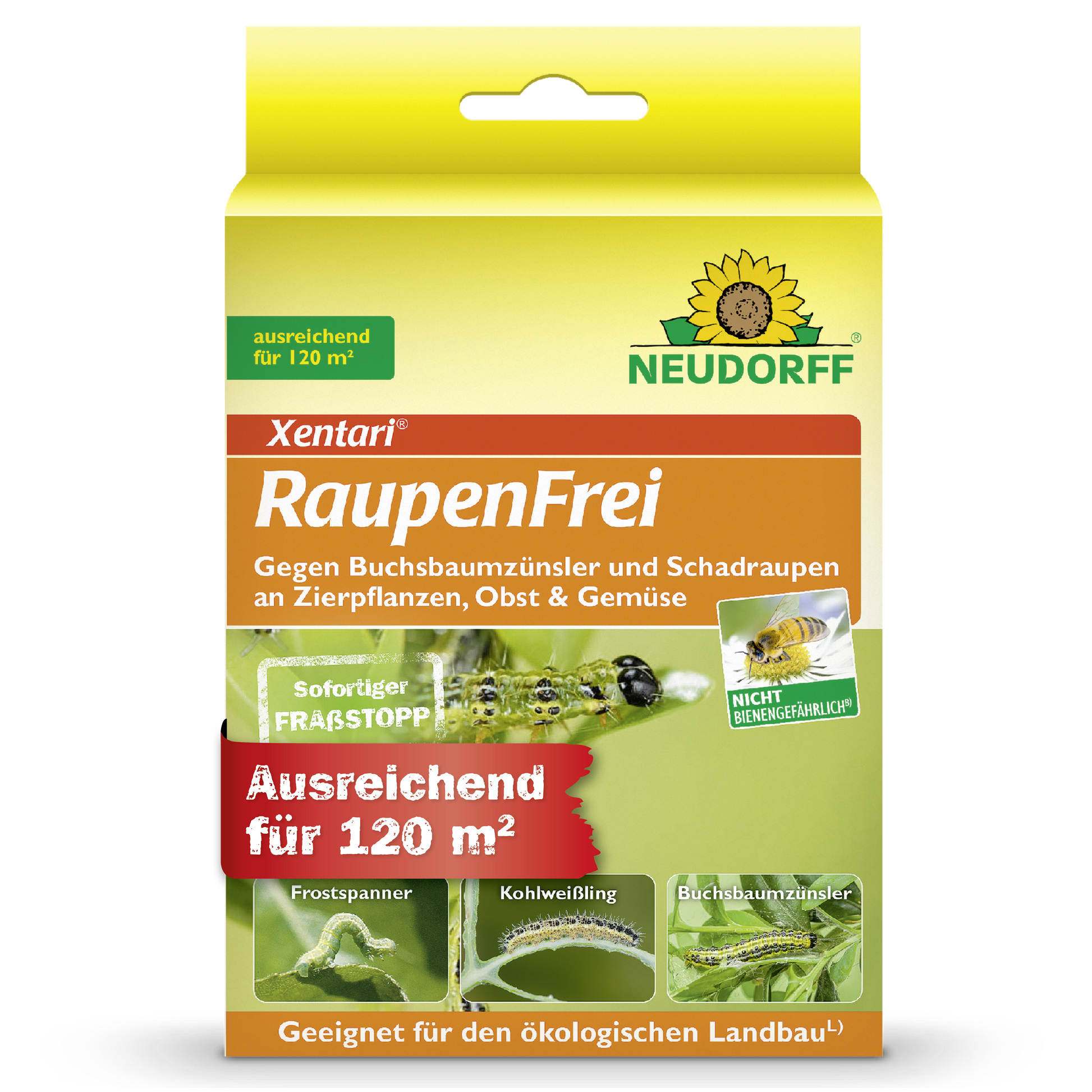 An der schick gestalteten Buchsbaumhecke haben sich Raupen breit gemacht und du möchtest sie schnell und effektiv loswerden? Neudorff Xentari Raupenfrei ist ein bewährtes biologisches Mittel gegen Raupen, mit dem sich Buchsbaumzünsler, Frostspanner, Kohlweißlinge oder Traubenwickler gezielt bekämpfen lassen!